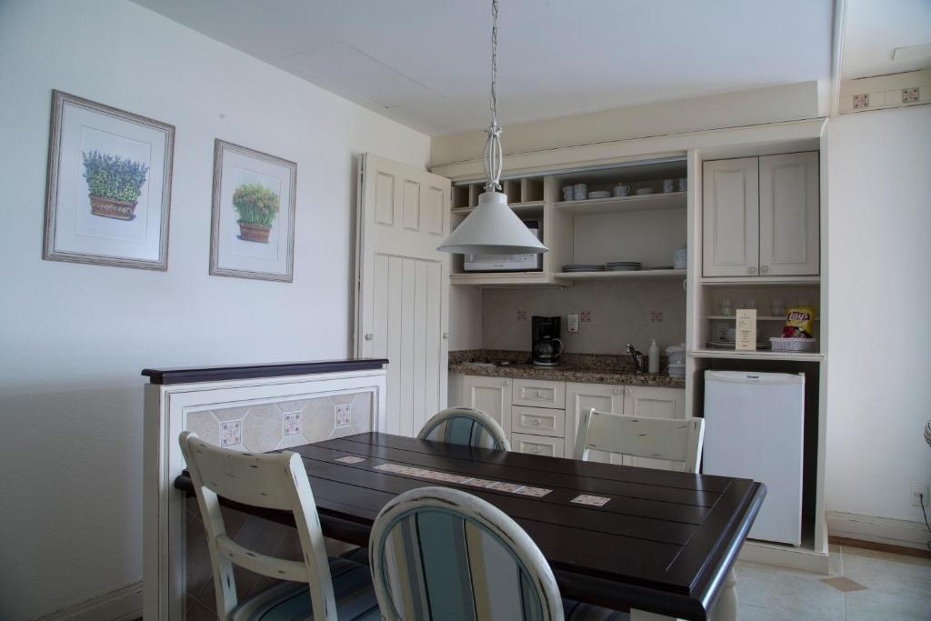 Cozinha equipada com com: Fogão Cooktop, cafeteira, microondas, minibar, louças e utensílios.